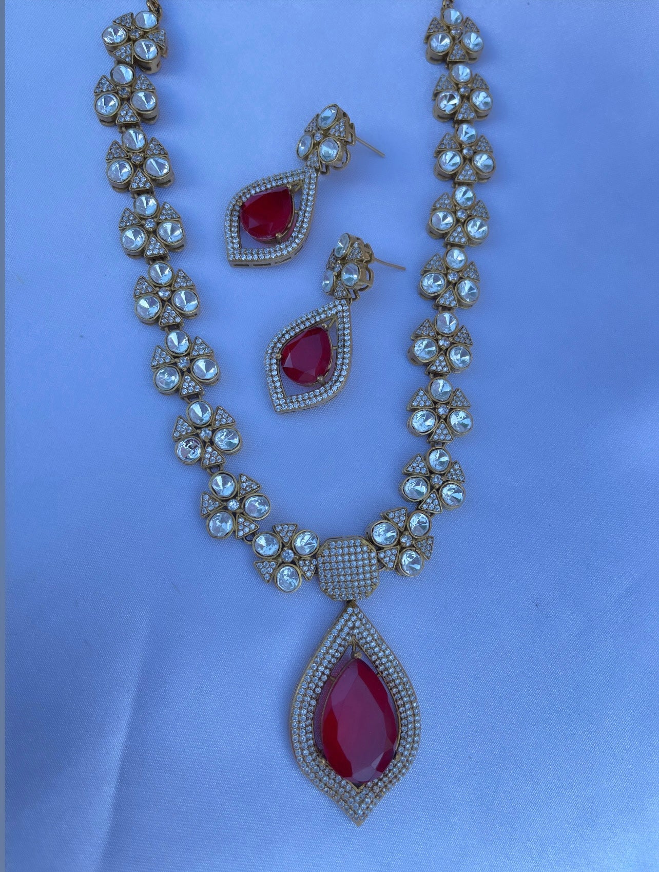 Anjali Moissanite Doublet Red Necklace Set