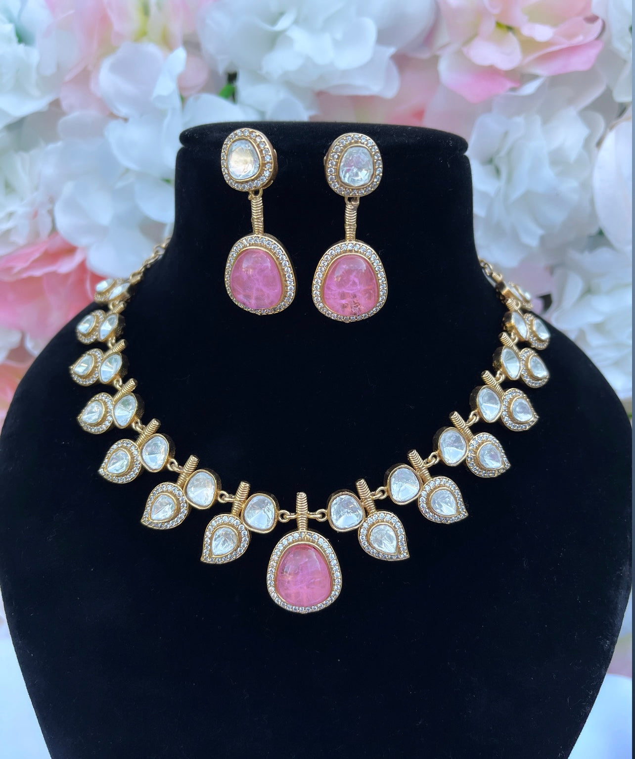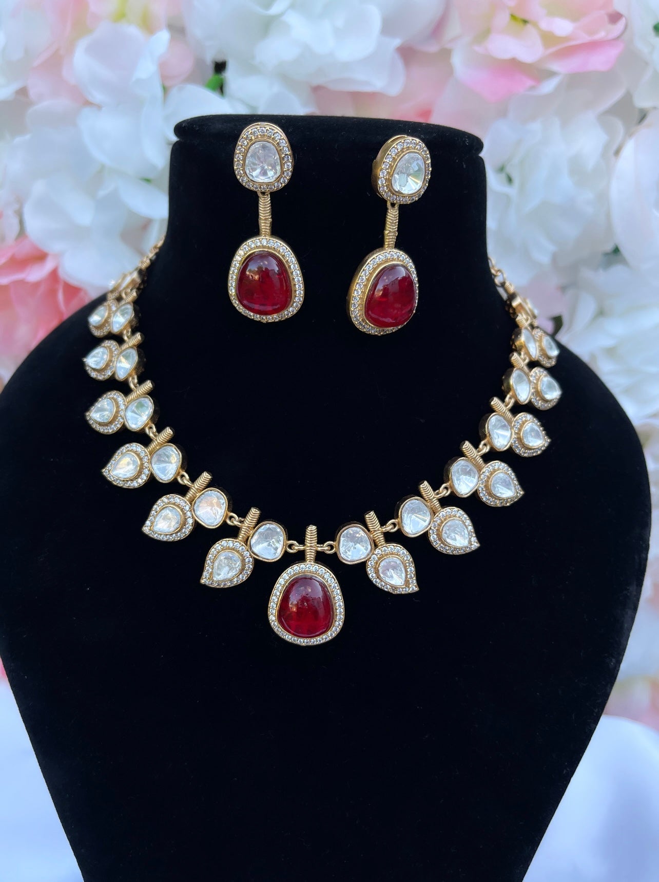 Sahiba Moissanite Kundan Ruby Necklace Set
