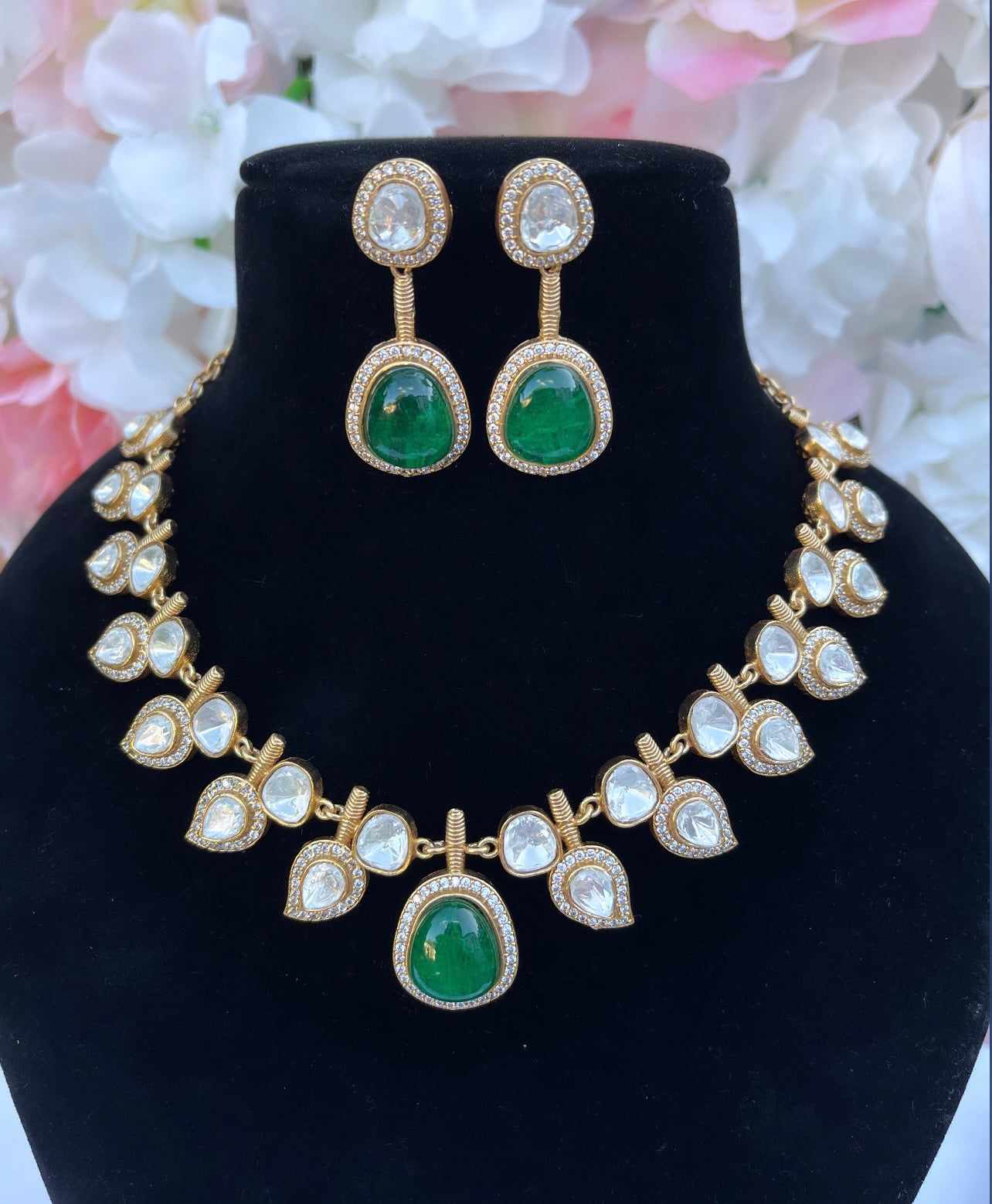 Sahiba Moissanite Kundan Emerald Green Necklace Set