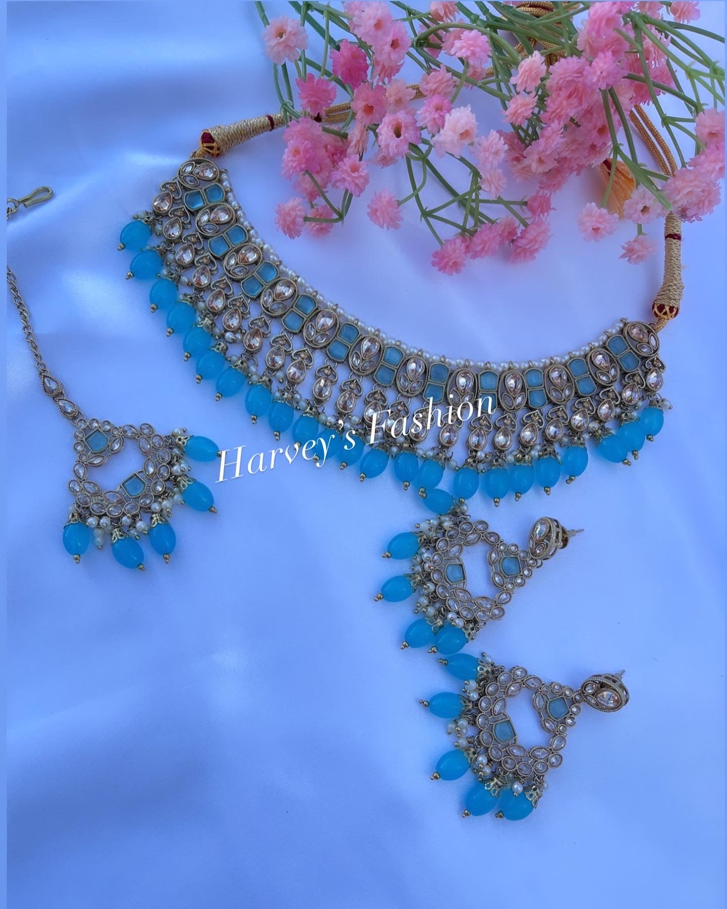 Simrat Sky Blue Polki Choker Set