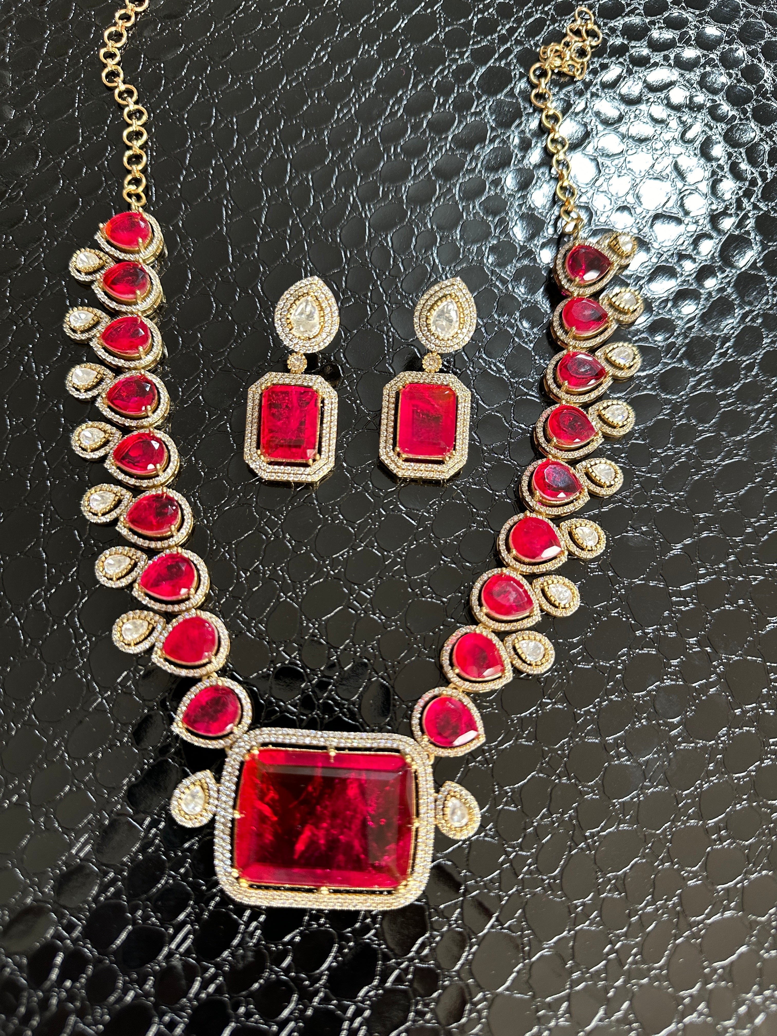 Bal Moissanite Cherry Red Kundan Necklace Set