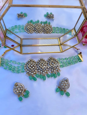 Make an eye-catching statement by adorning yourself with this chic and timeless Anahita Mint Choker Set.