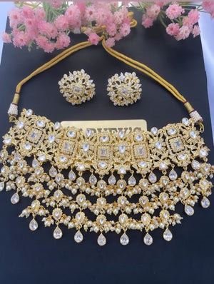 Kundan set is a traditional Indian necklace known for its intricate craftsmanship and rich history. Originating from the royal courts of Rajasthan and Gujarat, Kundan jewellery is renowned for its elaborate designs and use of precious stones .