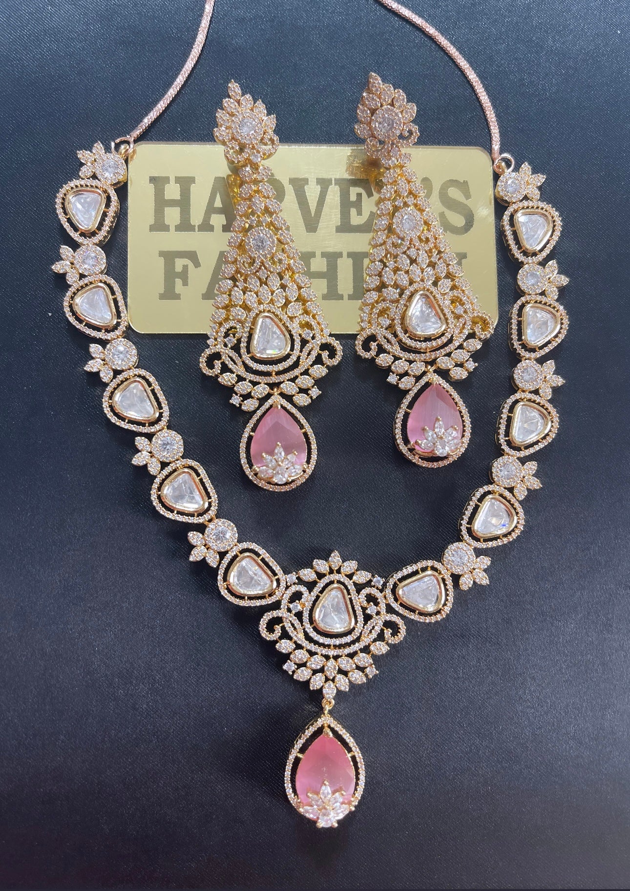 Sundar Moissanite Kundan Pink Necklace Set