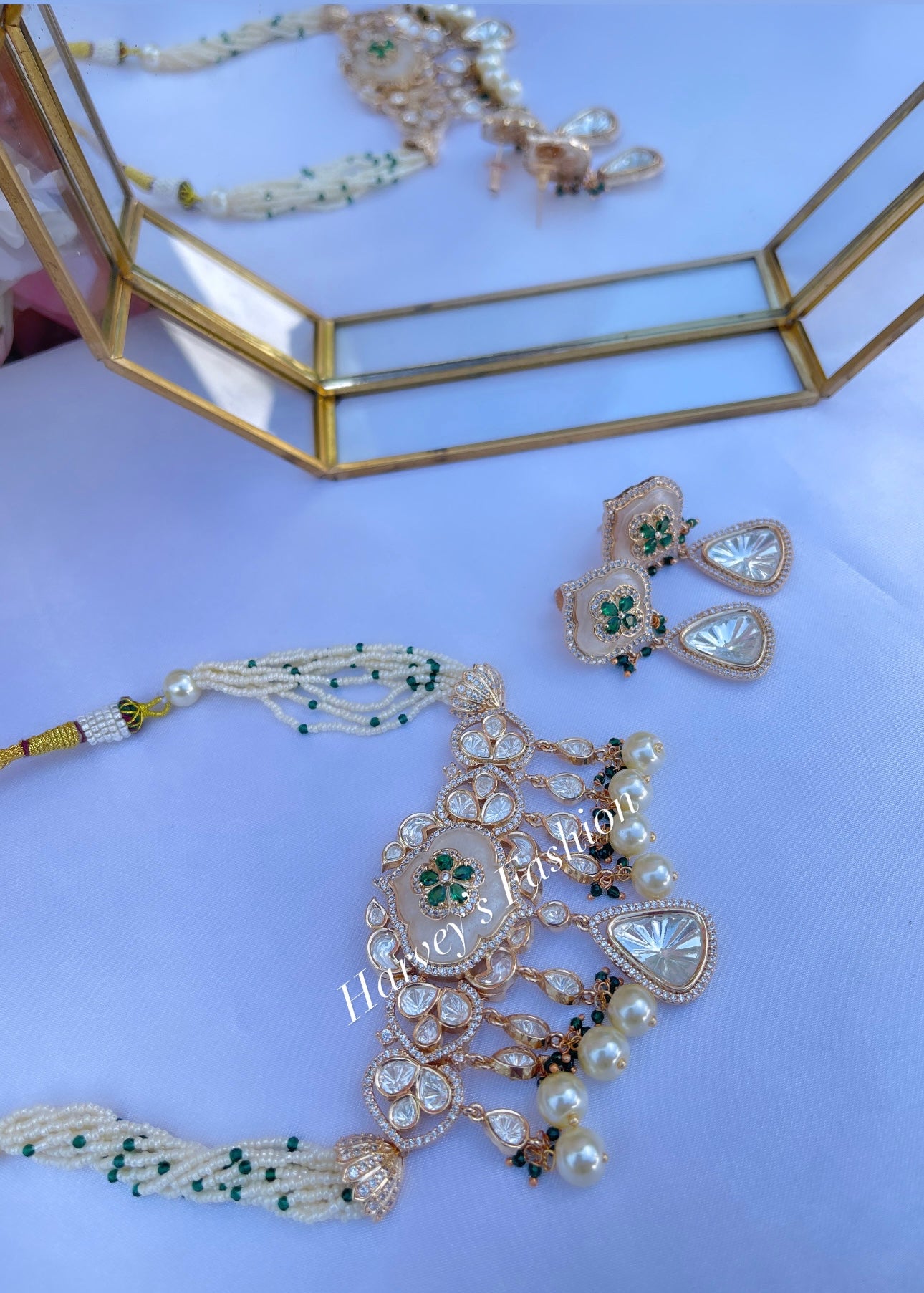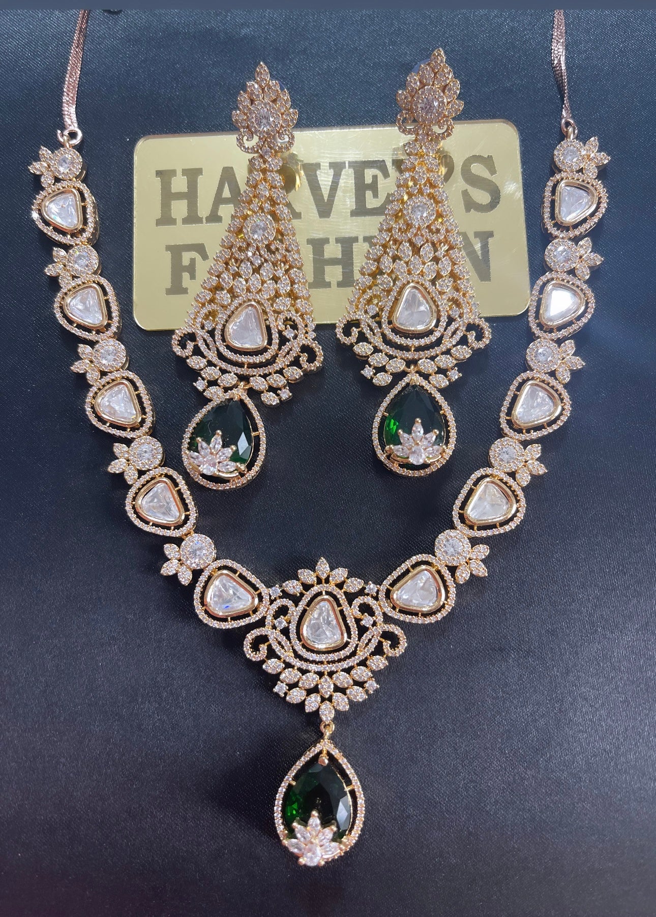 Sahiba Moissanite Kundan Green Necklace Set