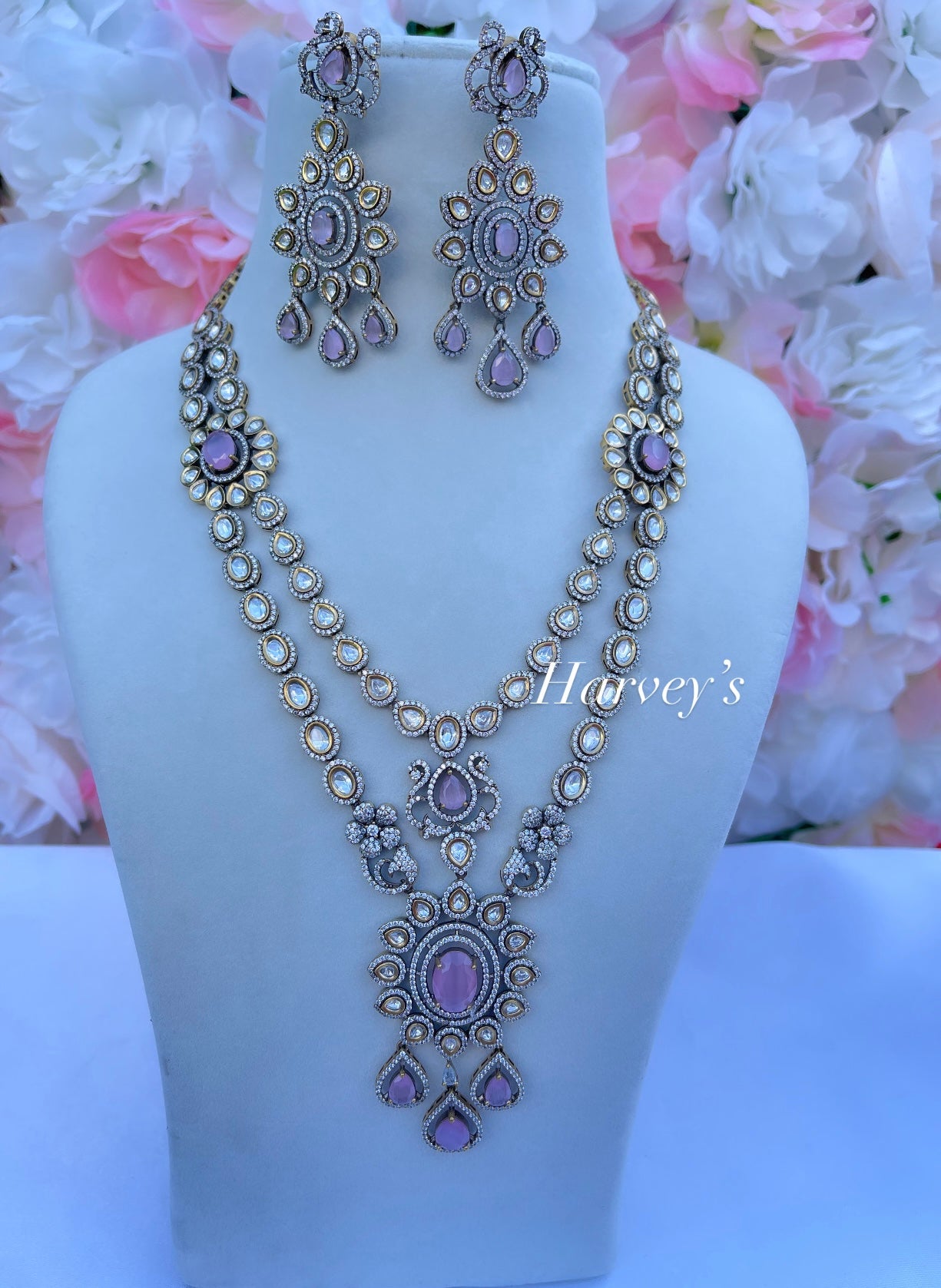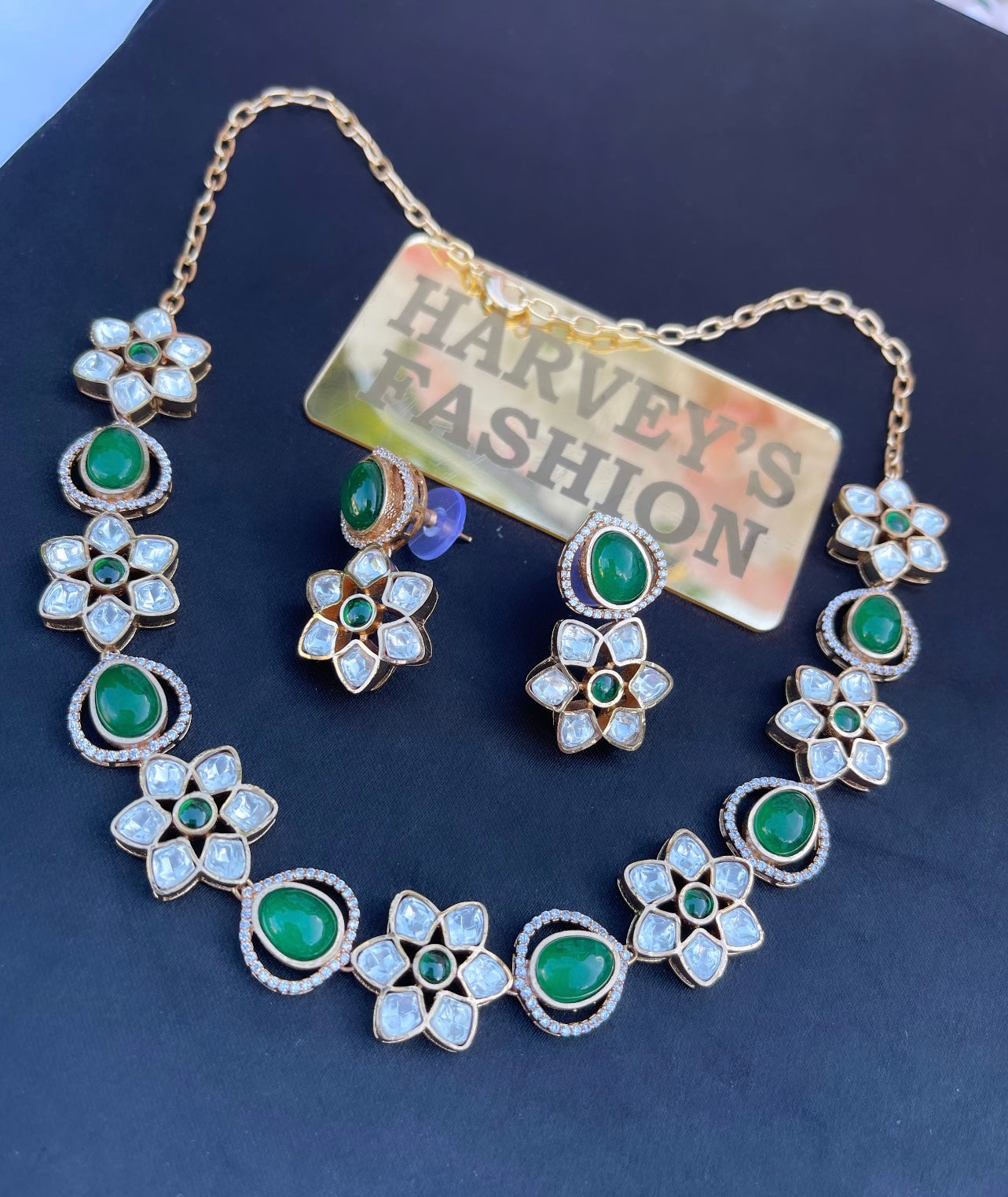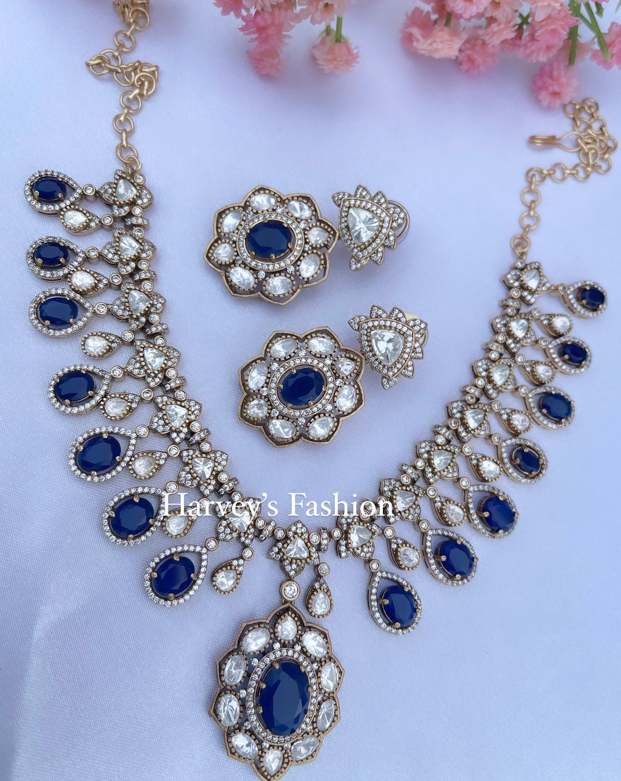 Sarv Moissanite Kundan Navy Blue Necklace Set