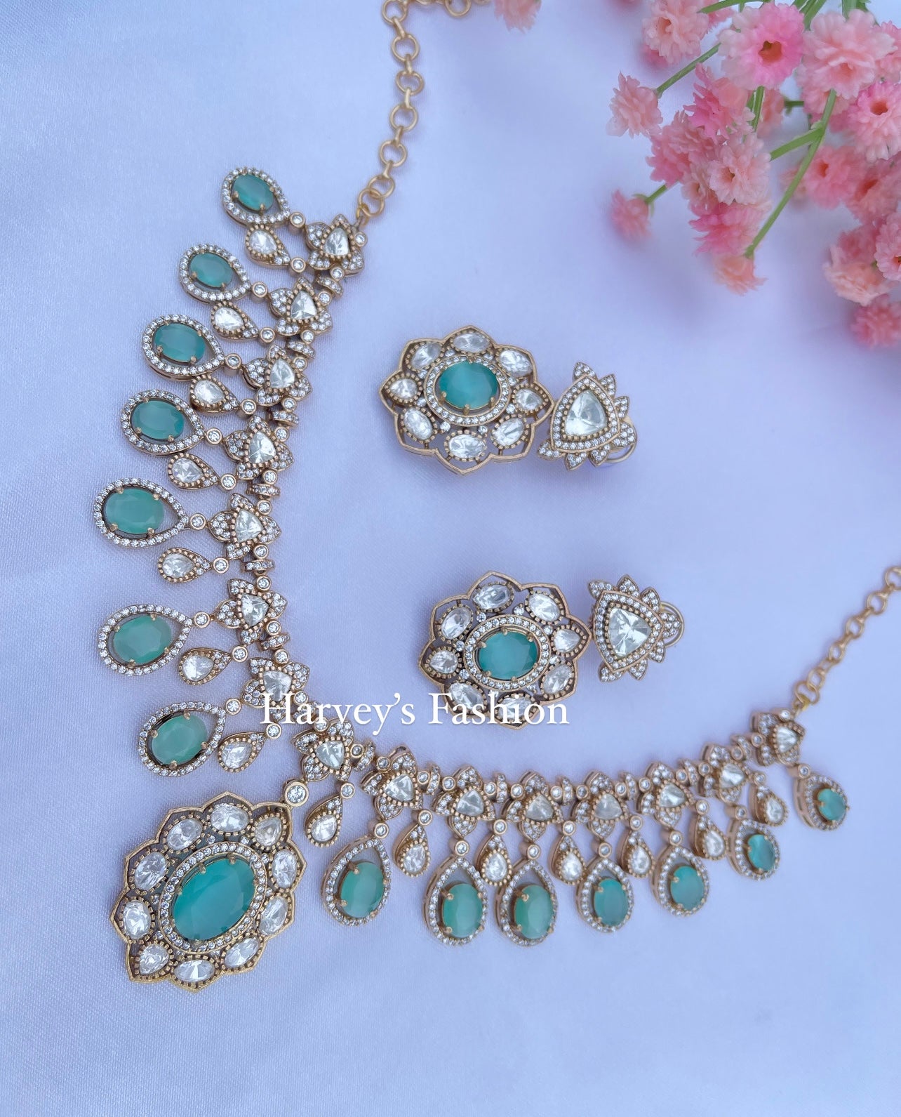 Sarv Moissanite Kundan Mint Necklace Set