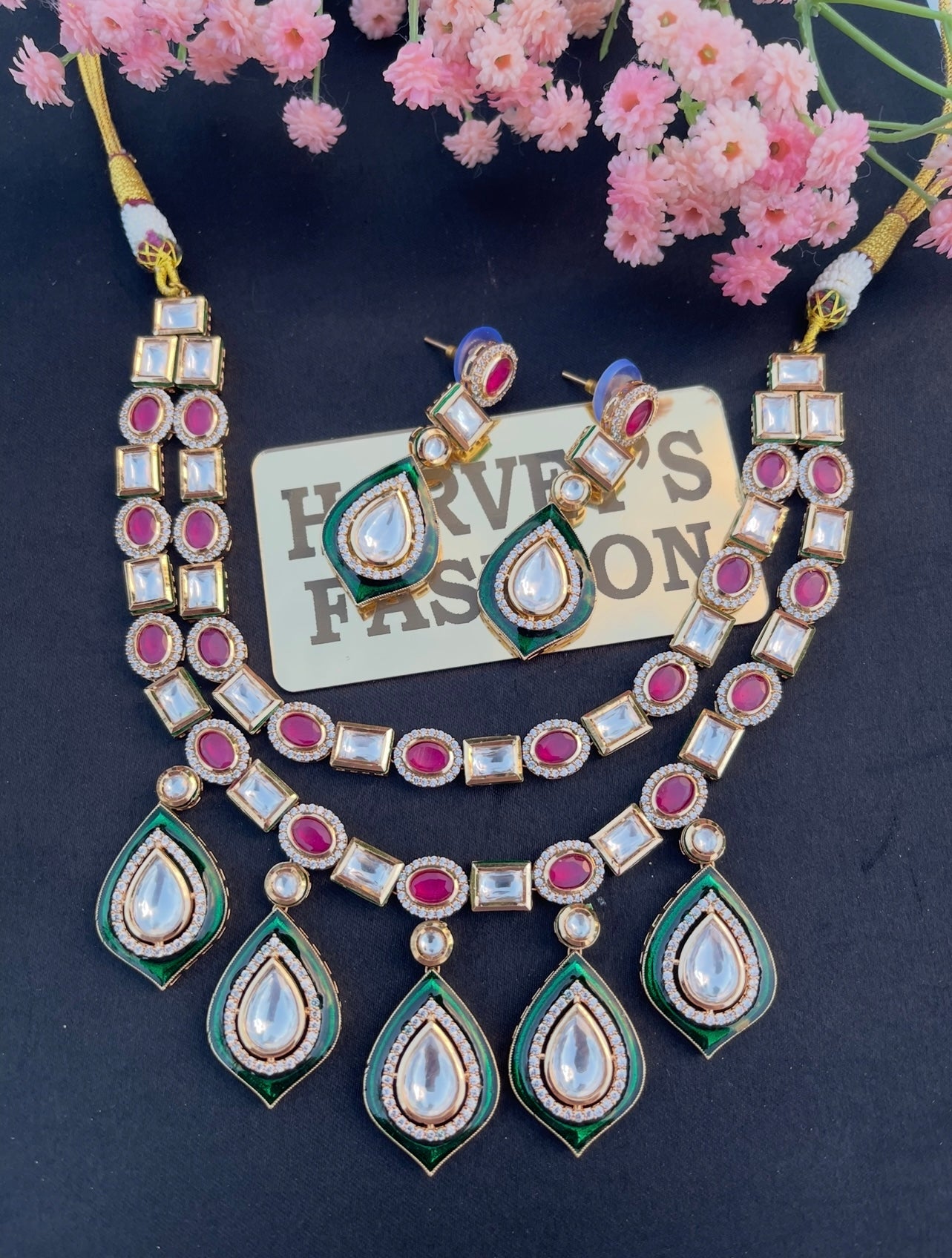 Kundan Hot Pink/Green Set