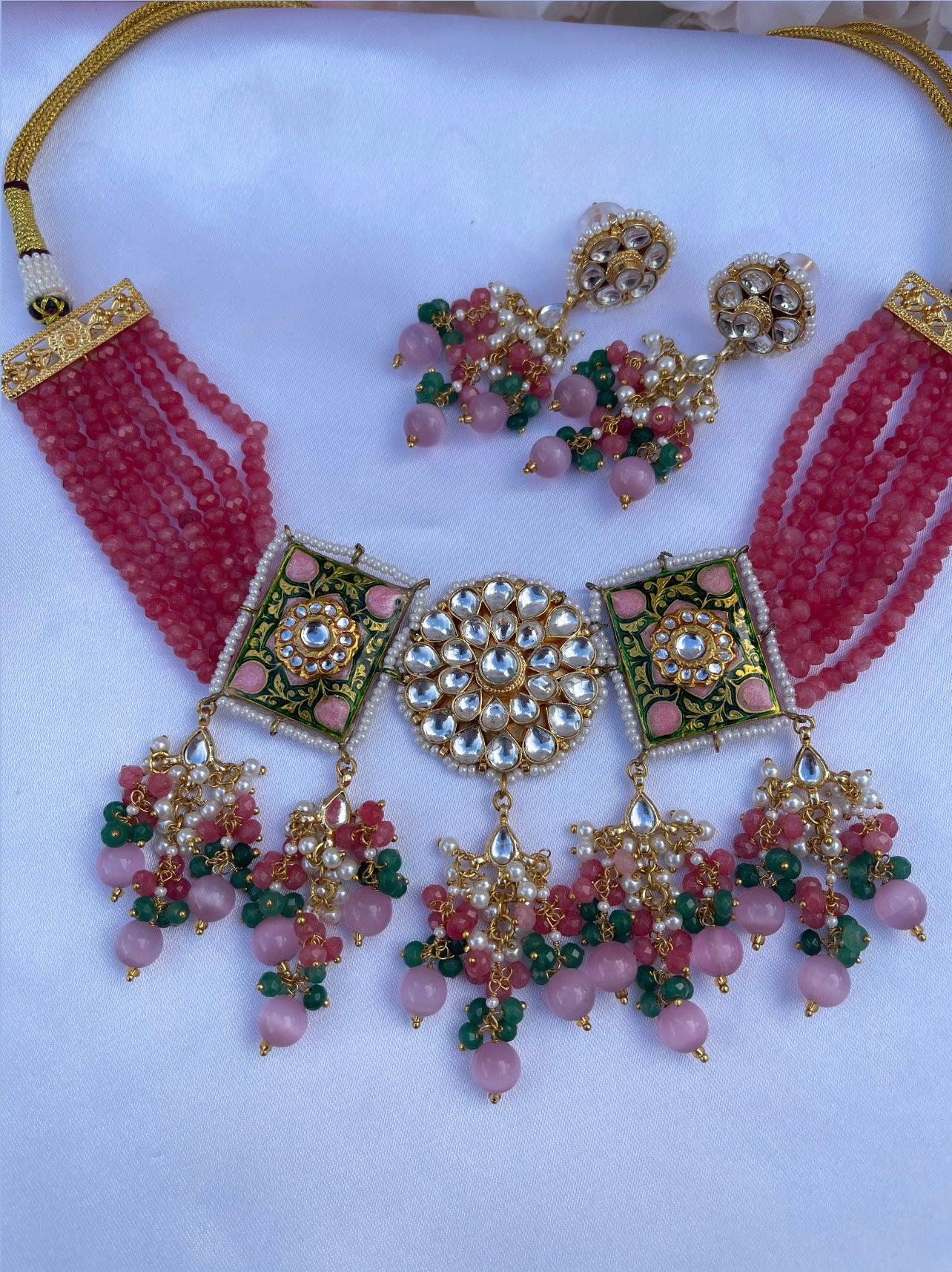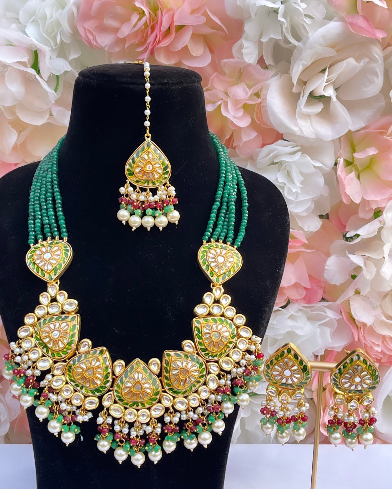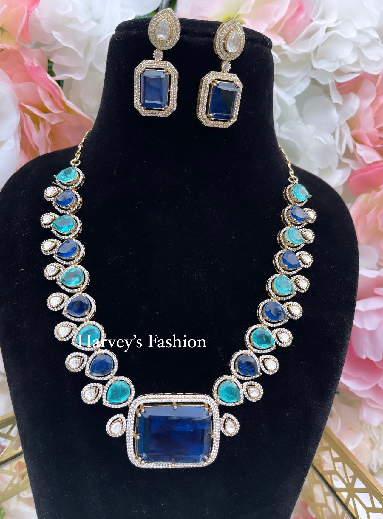 Bal Moissanite Teal/Blue Kundan Necklace Set