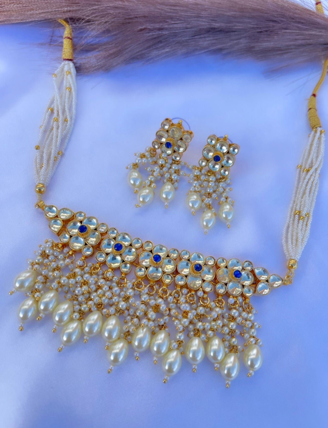 Anjali White/Blue Pachi Kundan Set - Perfect for Weddings and Parties