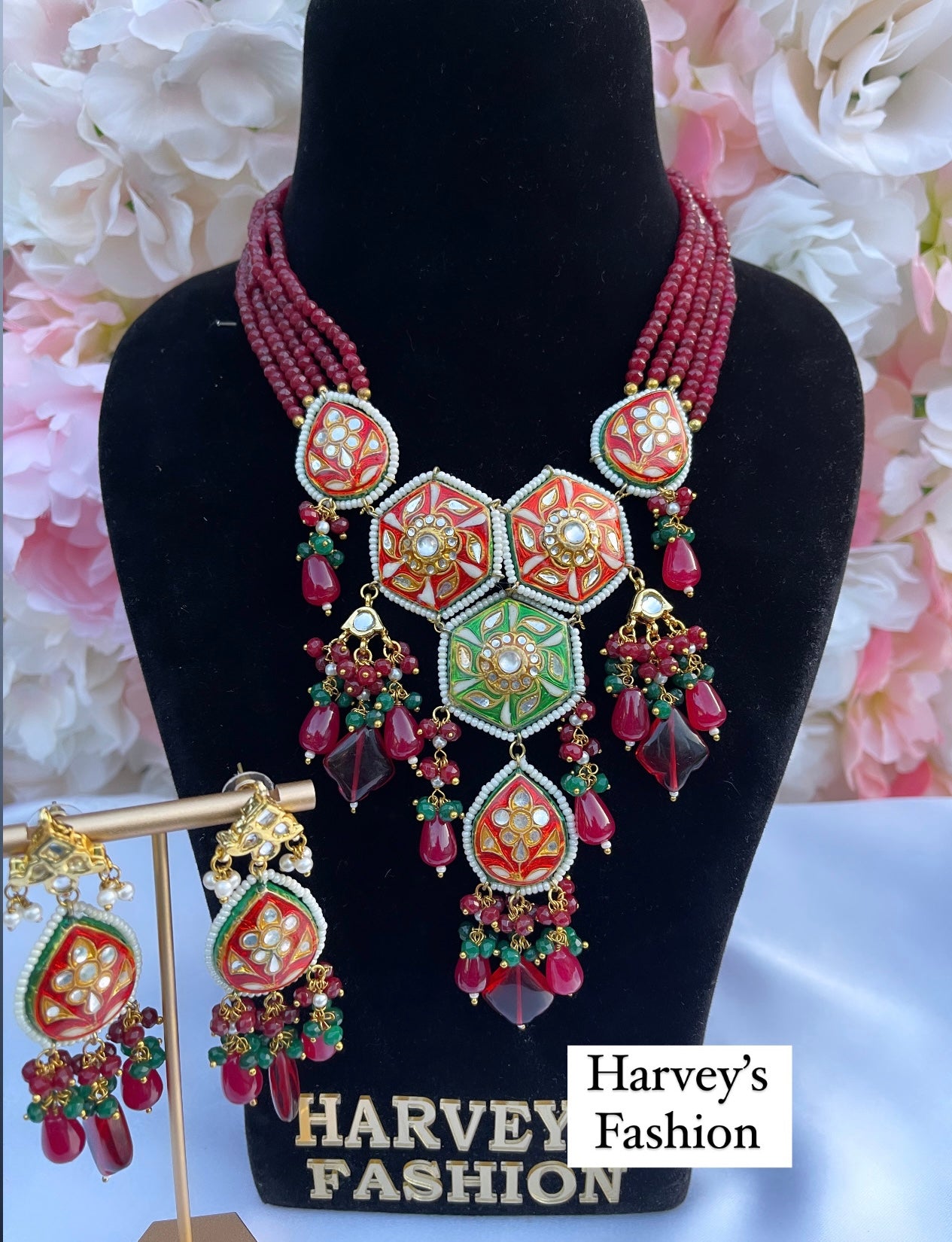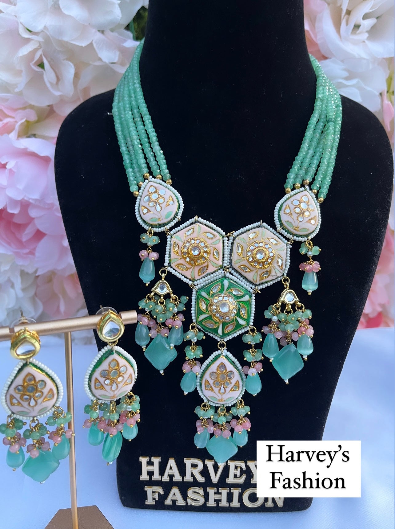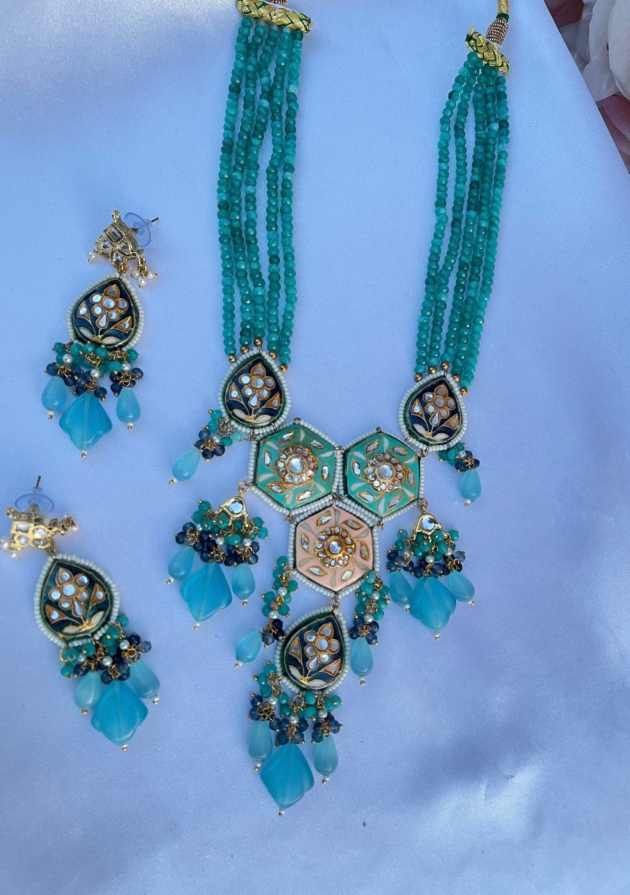 Lata Hand-Painted Turquoise Beads Necklace Set