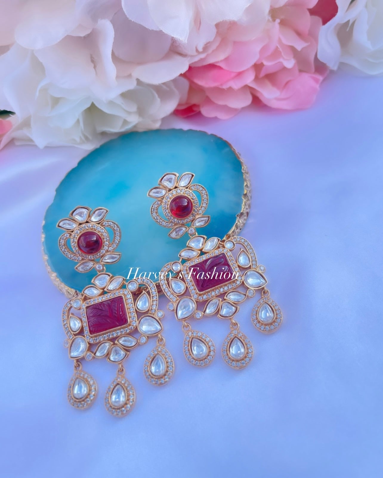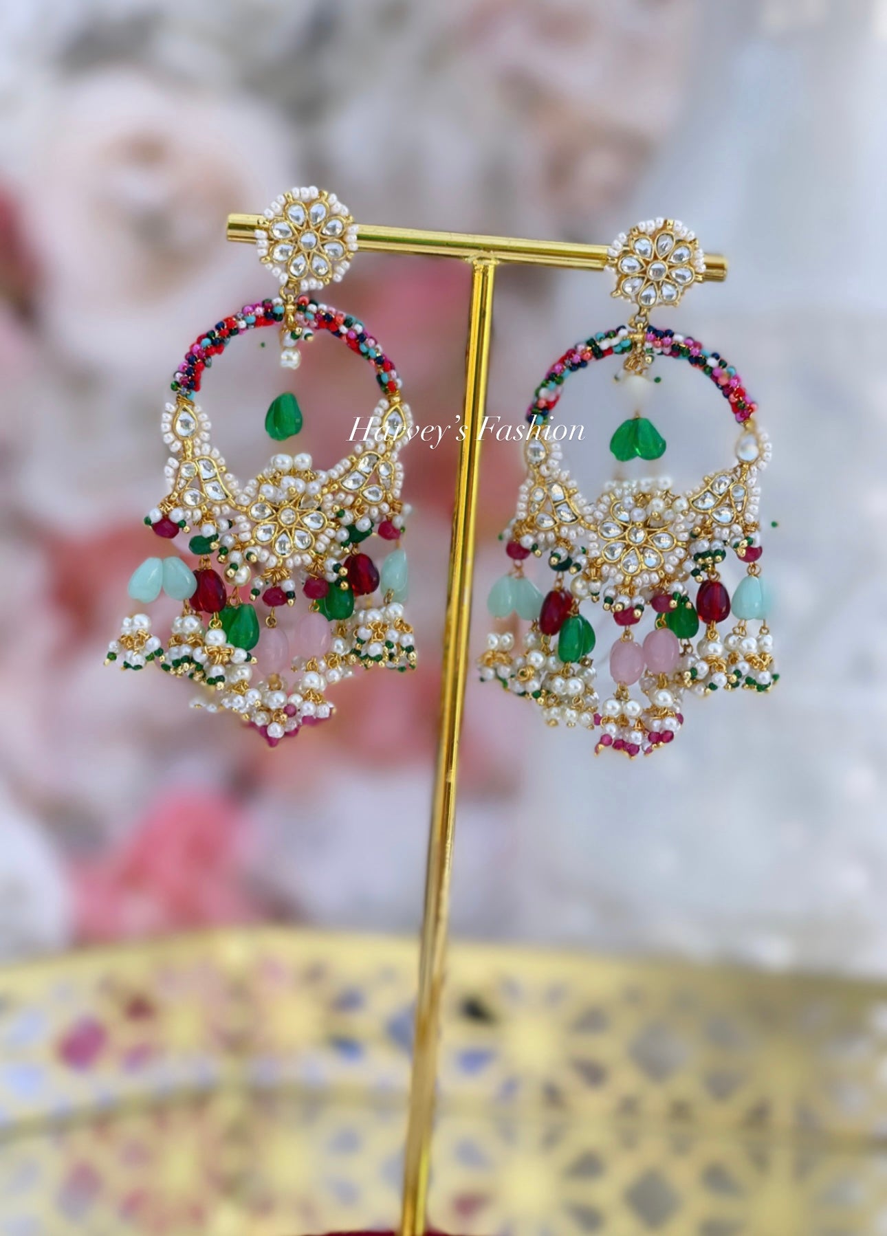 Shine brighter with these beautiful earrings from Harveys Fashion House. Inspired by Indian culture, these earrings are handcrafted with incredible attention to detail. From Jhumkas to Chandbalis, you'll find an array of beautiful designs crafted using high-quality materials such as gold plating, Kundan stones, pearls, and beads. Perfect for any occasion; whether it be a wedding or a festive celebration, these dainty earrings are light and comfortable enough to be worn for hours on end. These versatile Indian Earrings for Women will be sure to add a special touch to any outfit!