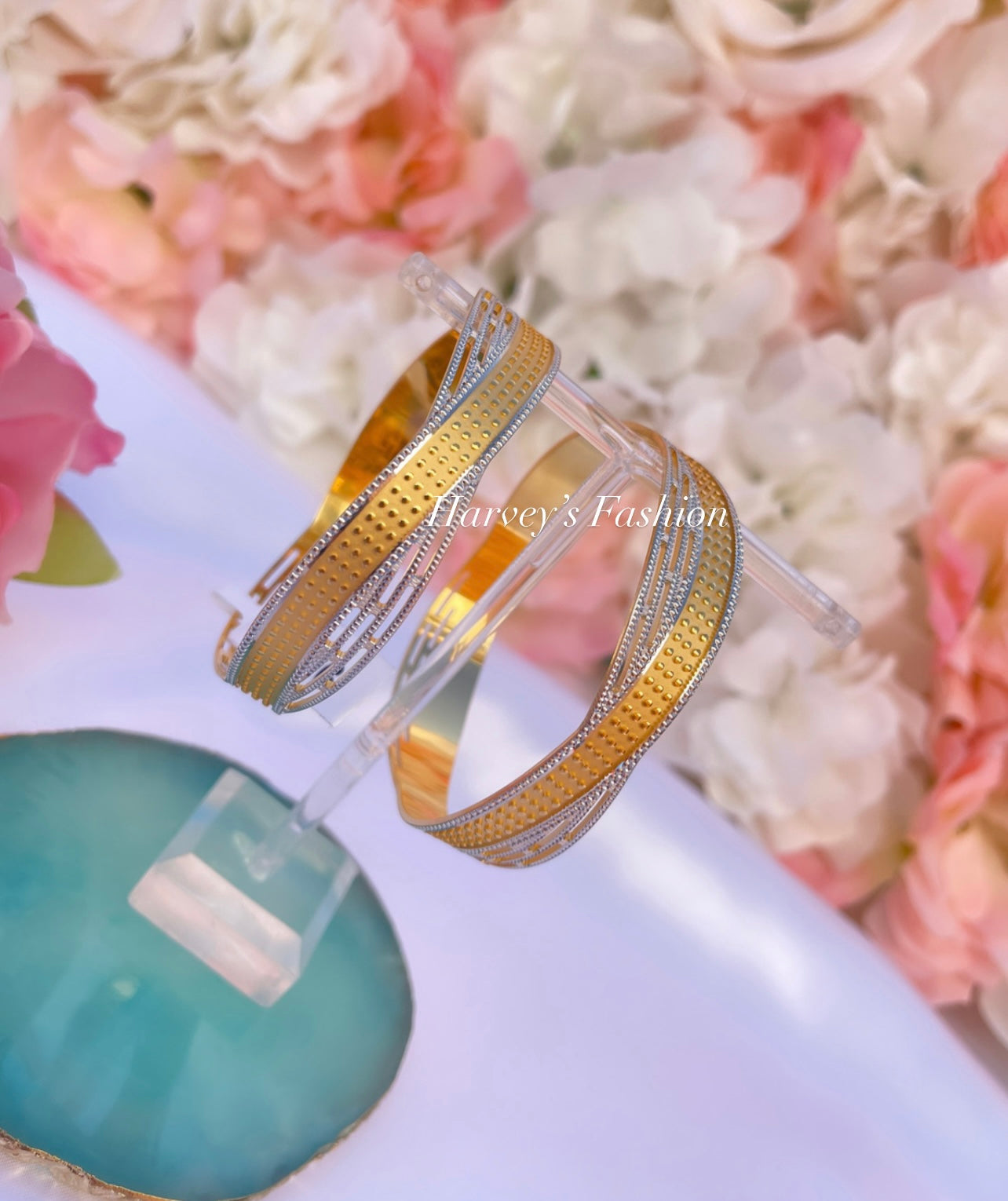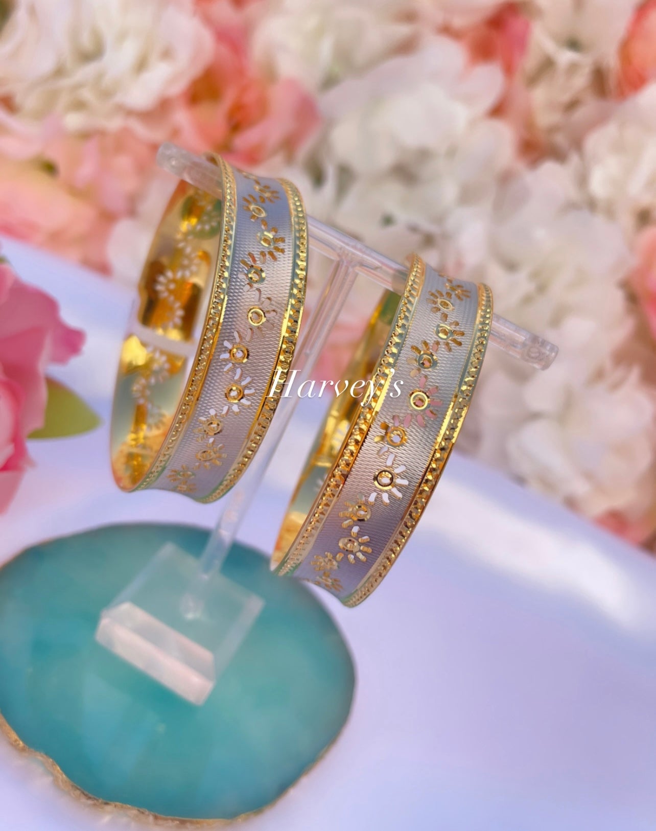 Let Harveys Fashion House add a touch of elegance to your outfit with these traditional Indian BANGLES. They provide the perfect traditional look for any occasion - from weddings to everyday wear. Express your personal style and add a pop of color to your look by mixing and matching them with other jewelry pieces. Complete with intricate Indian design, they make a great gift for any loved one or friend who appreciates Indian fashion and culture. Perfect for special occasions or everyday wear, these Indian bangles make a great gift for friends and family who appreciate Indian culture and fashion. With its easy-to-mix-and-match design, you won’t run out of creative ways to express your personal style and add a pop of color to your look. Let our Indian jewellery add a touch of elegance to your outfit with these Indian BANGLES for women.