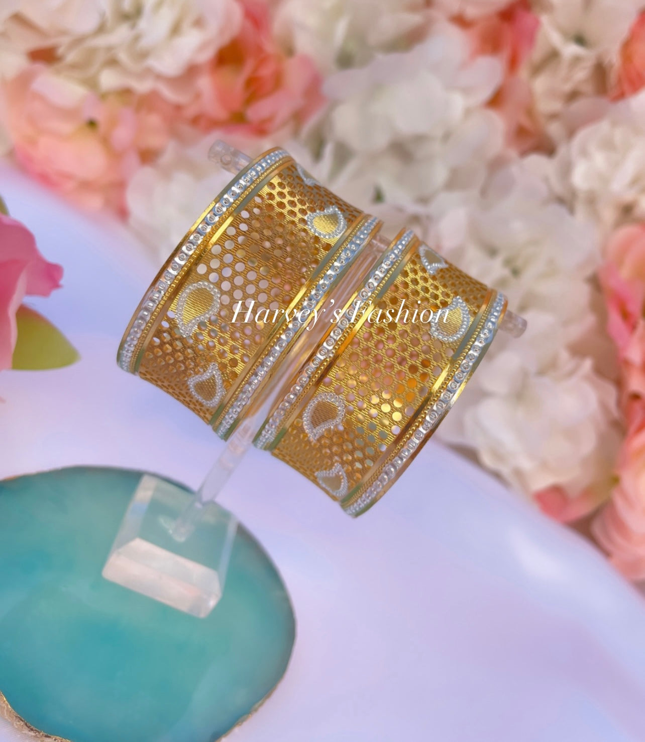 Let Harveys Fashion House add a touch of elegance to your outfit with these traditional Indian BANGLES. They provide the perfect traditional look for any occasion - from weddings to everyday wear. Express your personal style and add a pop of color to your look by mixing and matching them with other jewelry pieces. Complete with intricate Indian design, they make a great gift for any loved one or friend who appreciates Indian fashion and culture. Perfect for special occasions or everyday wear, these Indian bangles make a great gift for friends and family who appreciate Indian culture and fashion. With its easy-to-mix-and-match design, you won’t run out of creative ways to express your personal style and add a pop of color to your look. Let our Indian jewellery add a touch of elegance to your outfit with these Indian BANGLES for women.