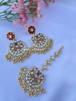 It's gorgeous and eye-catching jewelry that might provide a touch of regal charm to any outfit. Whether you're wearing a traditional Indian saree or modern Western attire, this tikka set will improve your image and add a touch of sophistication.