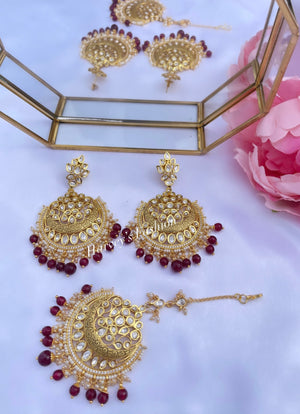 - Intricate, glamorous, and fit for a special occasion, or just because one look at your reflection will convince you that you were born to wear this. Your subjects can thank you later. Showcase your heritage and culture in style with this luxurious Maroon Uncut Kundan Tikka Set, perfect for any special occasion.