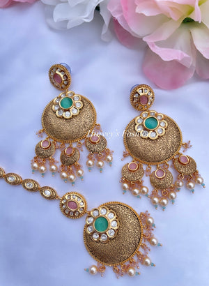 Mint/Pink Jodhpuri & Uncut Tikka Set