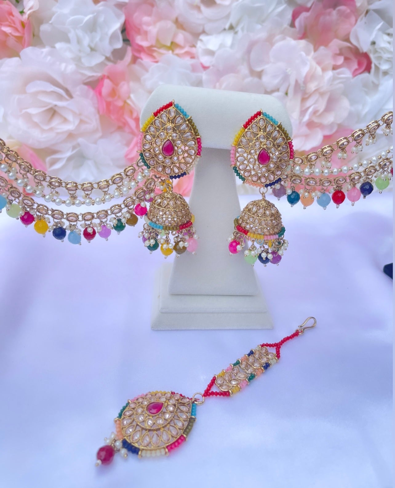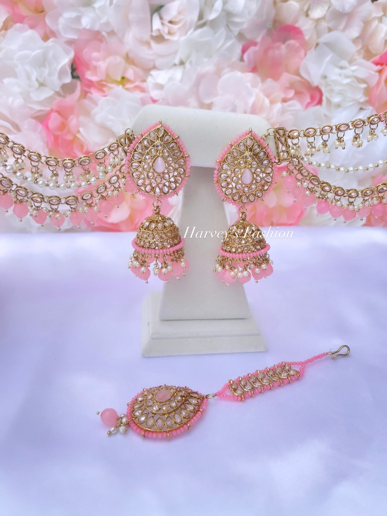 Elevate your style with the Indian Earrings and Tikka Set from Harveys Fashion House. This intricate set features delicate detailing that's sure to turn heads, no matter the occasion. High-quality construction ensures lasting durability, so you can enjoy these Indian earrings for years to come. With lightweight comfort, you can wear Indian tikka set for extended periods of time without any discomfort. Choose from a variety of styles and colors to match any outfit. From weddings to formal events to everyday wear, these Indian jewellery tikka sets are just what your wardrobe needs.