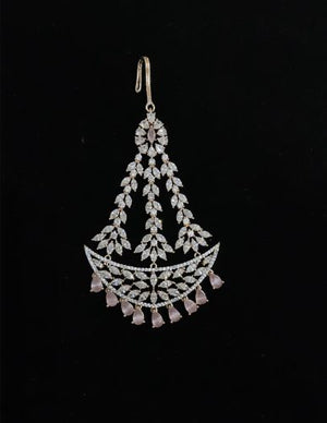 This Manreet AD Pink Jhumar embodies the alluring spirit of traditional Indian design. But don’t mistake it for your grandmother’s jewelry—this piece puts a modern, whimsical spin on classic styles. Delicate pink stones resembling American diamonds or crystals adorn the jhumar, adding a feminine pop of color and playfulness.