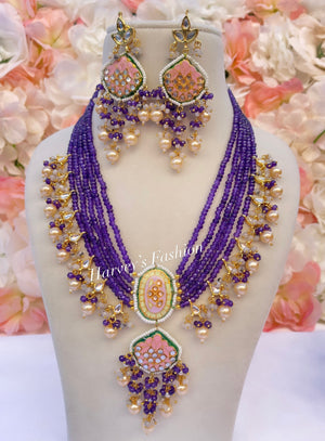 Featuring an elaborate and intricate design, this stunning piece features multiple layers of purple kundan stones set in a gold-plated brass base. Perfect for traditional Indian accessories such as sarees and lehengas, it’s ideal for weddings, receptions, and other special occasions. It’s handcrafted by skilled artisans with attention to detail and crafted from high-quality materials to ensure long-lasting wear. Make a statement with this timeless jewelry piece from DEEPIKA PURPLE LONG HAAR.