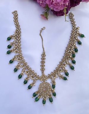 This Matha Patti is a beauty incarnate. Its vibrant emerald green hue and ornate detailing are fit for royalty, infusing any look with the luxury of a maharani. Intricate patterns dance across its surface, accented by shimmering beads, crystals, and stones that catch the light with every turn of your head. But for all its lavish adornments, this Matha Patti is a study in versatility. Features: An adjustable chain lets you customize the fit to your liking, allowing this headpiece to accompany you from a mehndi ceremony to your wedding day and every celebration in between. Whether embracing your inner Bollywood starlet or channeling a bohemian bride, this Matha Patti is the crowning touch your ensemble has been waiting for. Tradition has never looked so stunning. This eye-catching headpiece will make a bold statement, featuring an intricate design adorned with beads, stones, and crystals. The adjustable chain or string at the back allows you to customize the fit, ensuring it stays securely in place. Stand out from the crowd and make a fashion statement—the Green Matha Patti will surely take your look up a notch!