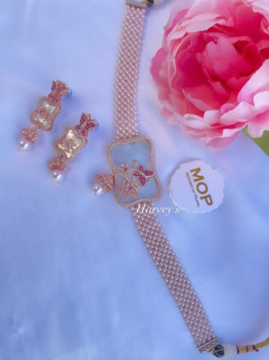 Hot Pink MOP Choker Set with Rose Polish- Add a pop of pink to your look with this must-have choker set. Featuring an adjustable chain, these chokers sit comfortably around your neck to create an on-trend style that’s all your own. Accentuate your neckline and showcase your flair for fashion with these feminine accessories that are versatile enough for both day and night. Whether you’re headed to brunch, the office, or a night out, these chokers complete your outfit with a contemporary yet flirty touch. Adjust the chain to your perfect fit and secure the clasp for a style that’s as comfortable as it is glamorous. In a shade of pink that’s perfect for all seasons, this choker set is your new go-to for an instant dose of color and pizzazz. Features This choker set is designed with a luxurious choker style, adding a fashionable and modern look to any outfit. The adjustable chain or clasp allows you to customize the fit for your comfort, while the hot pink mother of pearl enhances the neckline for a feminine and flattering appearance. Add some color to your wardrobe with the Hot Pink MOP Choker Set for an instant style upgrade every time you wear it.