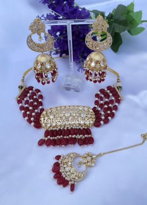 Harveer Maroon Kundan Set