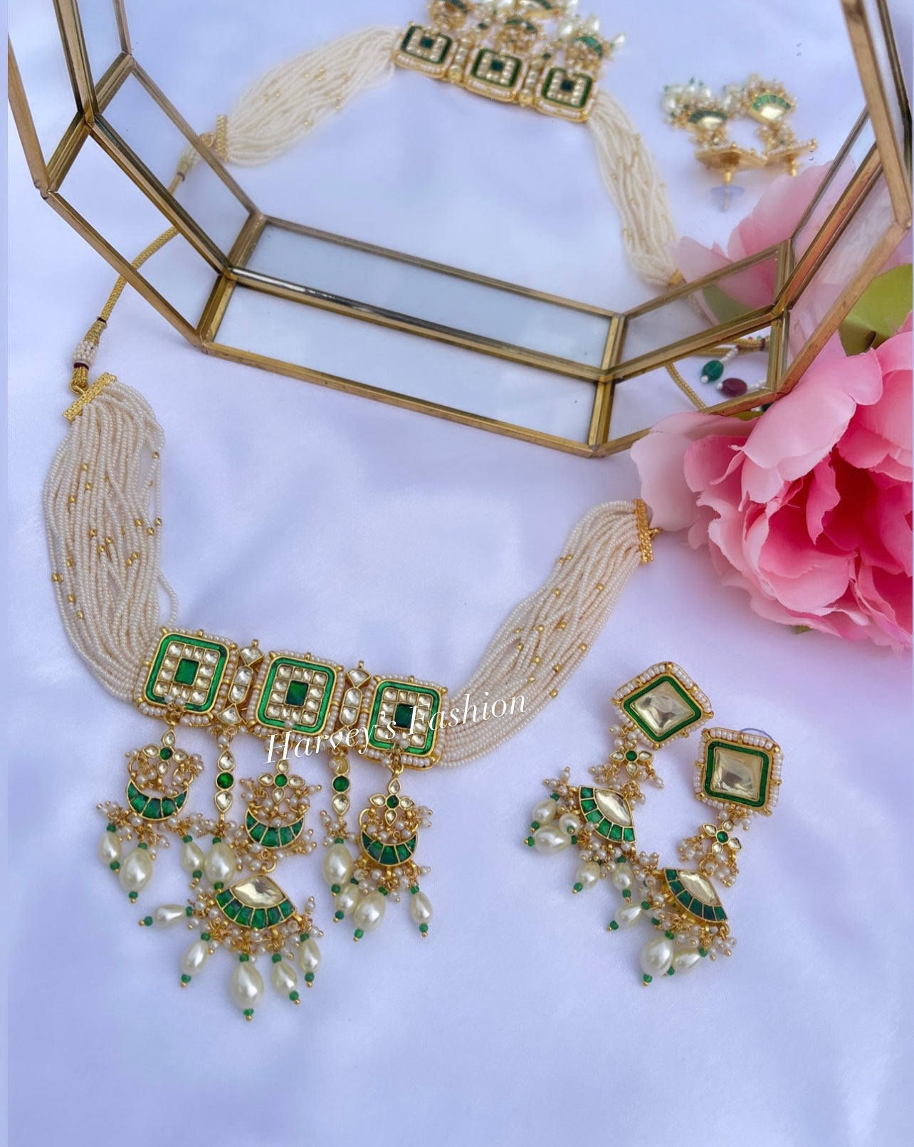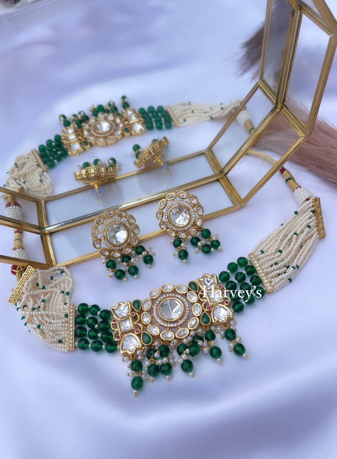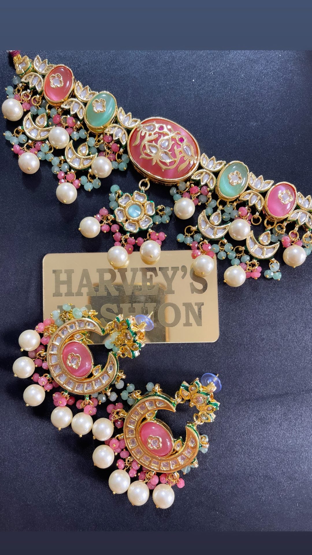 Let your neck stand out with these gorgeous PARTYWEAR CHOKER NECKLACE SETS from Harveys Fashion House. Featuring sophisticated and intricate designs with elegant embellishments, these necklaces are the perfect addition to your outfit. Crafted with high-quality metal, pearls, beads, and stones, they are sure to turn heads while being comfortable and secure. Available in a variety of colors and designs, you can find the perfect choker necklace to match any outfit or occasion. Plus, with adjustable chain lengths and closures, they’ll remain comfortable all night long. Whether you’re looking for something classic or something modern, each set comes in a range of colors and designs to choose from — making the perfect gift for friends who love unique jewellery. These intricate and detailed designs are crafted using high-quality metal and beads, so they won’t disappoint when it comes to durability. From special events to everyday wear, these PARTYWEAR CHOKER NECKLACE SETS make for an exquisite jewellery piece that is sure to be treasured for years to come.