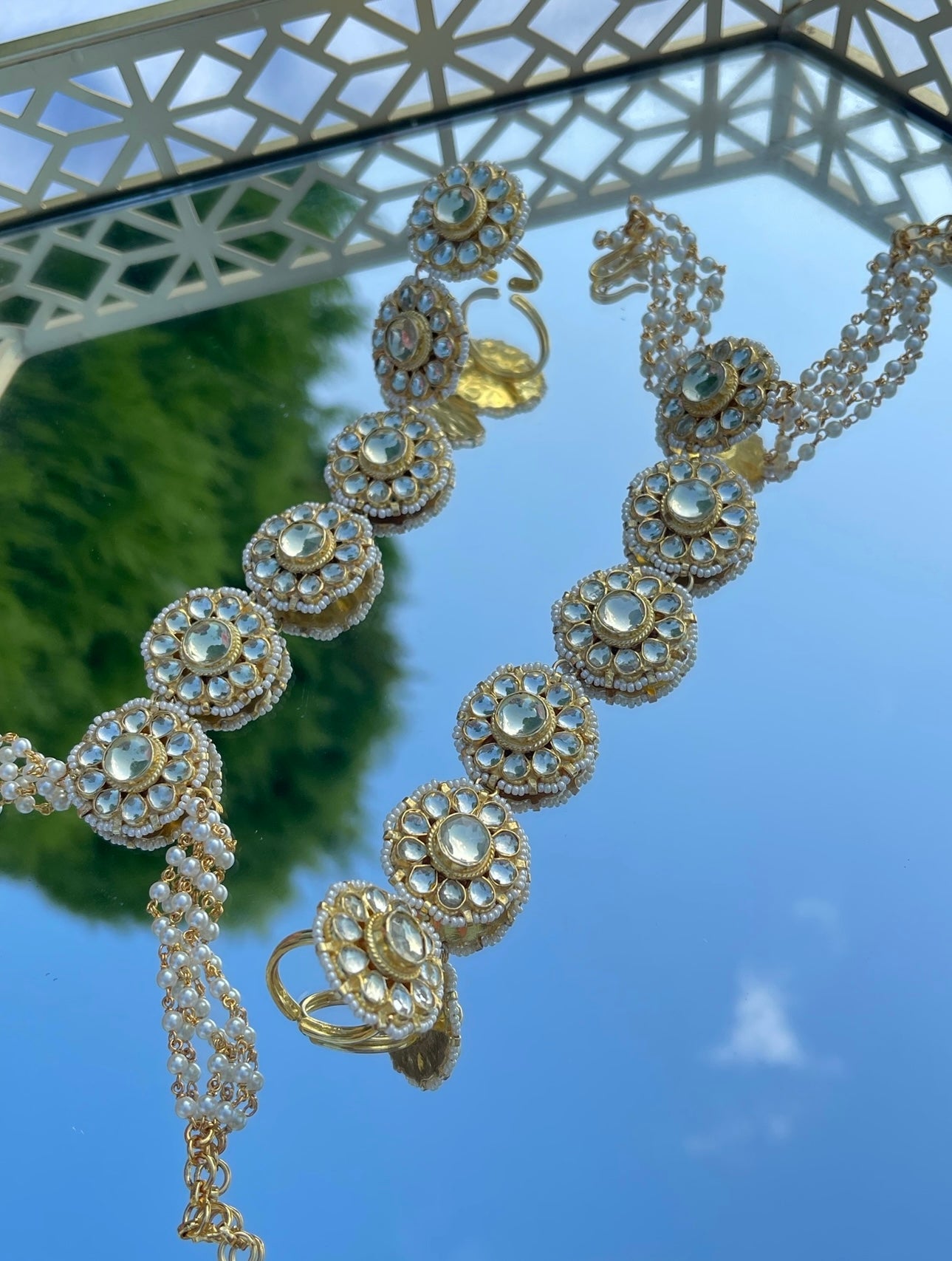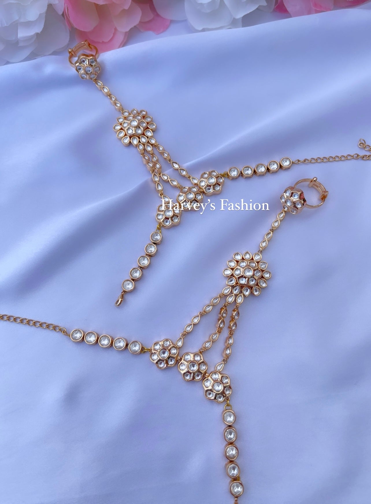 Add a spark to your style with the RINGS/HAND PIECE from Harveys Fashion House. Indian jewellery crafted with unique and eye-catching designs, they are sure to be the highlight of your ensemble. On top of their stand-out visuals, these handpieces are made with high-quality materials for durable and long-lasting wear. Available in a range of sizes, these wedding rings for women can fit all hand types perfectly. Whether you're attending an outdoor picnic or a formal event, these rings can be dressed up or down for any occasion. Lightweight and comfortable, you can wear them all day long for a chic style statement. Crafted with high-quality materials for durability and longevity, these handpieces are sure to be a conversation starter. Plus, it's available in a range of sizes to fit all hand types, so no matter the occasion—from casual hangouts to formal events—you can rock it in style. Choose weddings rings, wrists, or knuckle pieces to fit your individual style, no matter if you're attending a casual barbeque or a formal event. Enjoy lightweight comfort for all-day wear; perfect for making a statement without weighing you down.