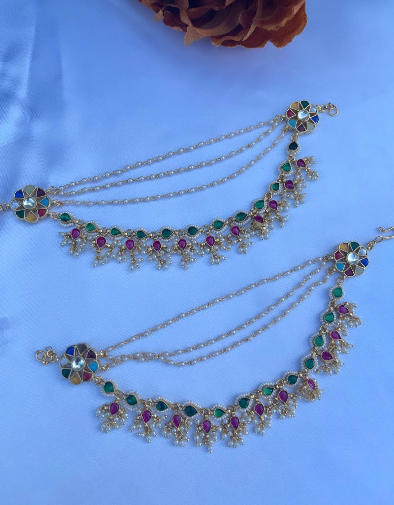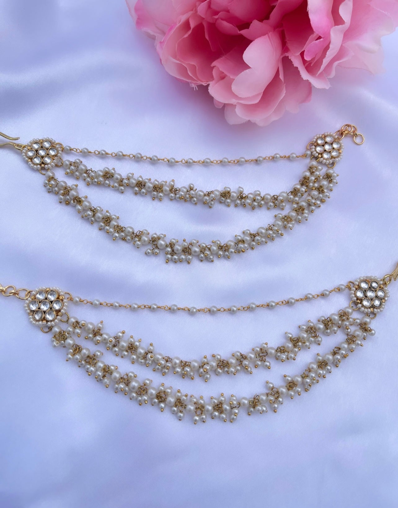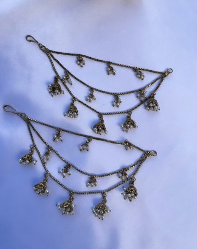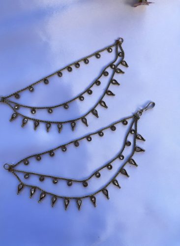 Step up your jewellery game with this beautiful and unique SAHAREY / EAR CHAIN from Harveys Fashion House. Whether you are dressing up for a special occasion or just want to add some sparkle to your daily ensemble, these jewellery pieces will make you feel elegant and sophisticated. These can be worn alone or with other jewellery pieces to create a layered look. This high-quality accessory is sure to turn heads with its intricate detailing such as beads, stones, or pearls, and is perfect for accessorizing an Indian outfit. These ear chains are available in a variety of styles and designs to complement any outfit. It is often adorned with beautiful and intricate detailing such as beads, stones, or pearls. Made from high-quality materials for durable and long-lasting wear. Enhance your look with this timeless piece and pair it with other jewellery pieces for a layered effect. Get yours now for some stylish sparkle! Make it part of your collection and cherish it forever. It will make a great gift for friends and loved ones for special occasions like weddings or birthdays, too. Whether you wear it alone or pair it with other jewellery pieces for a layered look, this SAHAREY / EAR CHAIN will surely stand out anywhere you go.