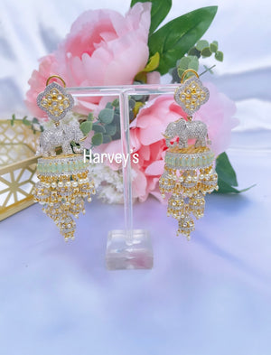 This earring will be a perfect addition to your jewelry collection! Crafted with high-quality materials like kundan and AD stones, this earring will not only stand the test of time but also bring you a lot of compliments. The intricate elephant design and pastel mint green stones make this earring look both elegant and sophisticated. With its medium size and lightweight design, you can wear it for long hours without feeling uncomfortable or out of place. And when paired with traditional or contemporary outfits, it adds a touch of glamor to any look.