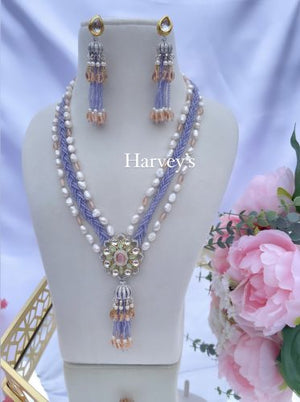 If a stunning statement-making jewelry set is what you’re looking for, this fabulous Ajooni Kundan Set is perfect for you. Take your wardrobe to the next level with this luxurious set designed with high-quality kundan stones. The beautiful blue and peach color combination makes the necklace and matching earrings a stand-out addition to any traditional Indian accessories. Lightweight and comfortable enough for all-day wear, you won’t mind pairing this versatile set with any look, on any occasion. Features: