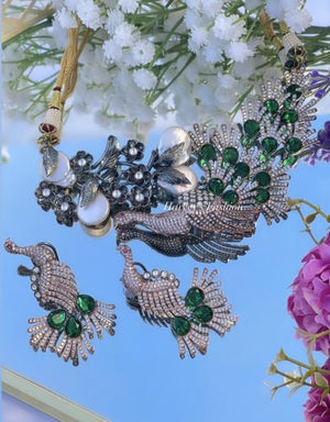 Wear it with a colorful sari or anarkali and prepare to dazzle. The lightweight, comfortable fit means you can dance the night away without a care. For a more minimal look, pair it with a little black dress or evening gown—this set provides the perfect pop of color and shimmer. However you style it, the beauty and craftsmanship of this American Diamond Green Set will make you feel like royalty. Treat yourself—you deserve to shine bright like a diamond!